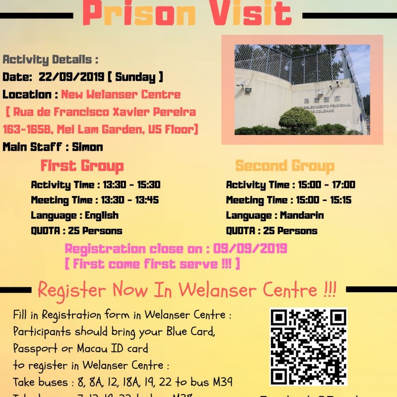 Let join our prisons visit to understanding the operation, know more about living conditions, causes and rights and obligations of persons in Macau, and letting participants understand the importance of knowing the law.