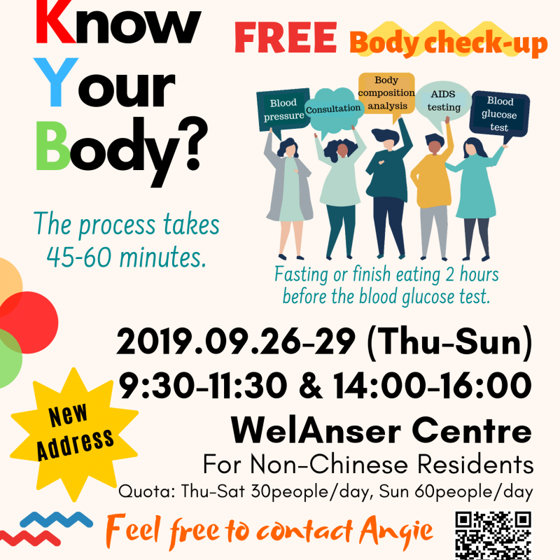 There will be a free four-day body check-up event, and you are welcome to join us. (You are suggested to make a reservation first)